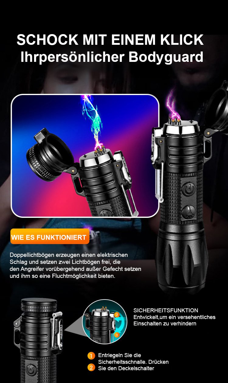 Multifunktionale Taschenlampe mit Elektroschock und Zündung