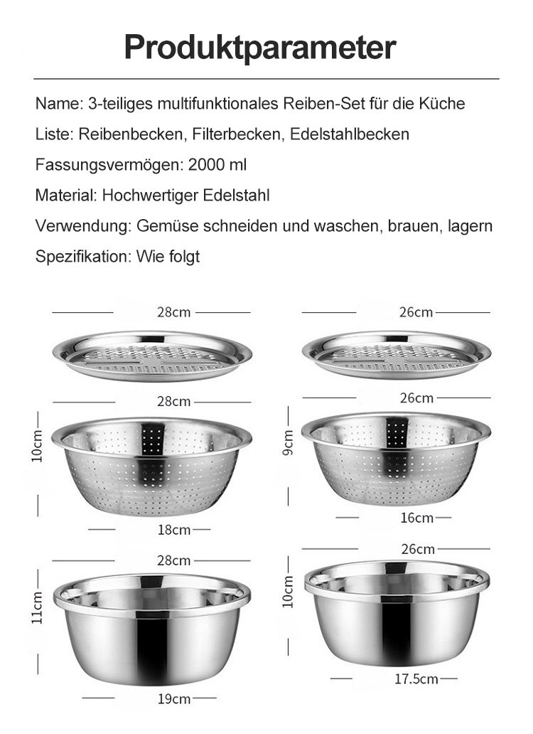 Reibenbecken, dreiteiliges Set